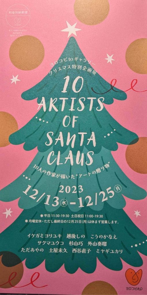 多摩美術家協会会員・西谷直子がヨロコビ to ギャラリーにて開催のクリスマス特別企画展『 10 ARTIST OF Santa Claus 』10人が描いた“アートの贈り物”に参加致します。是非、ご高覧ください。