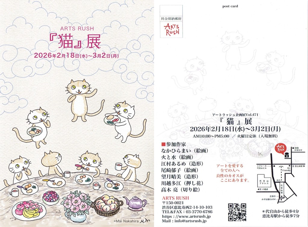 2026.2.18(水)~3.2(月) なかひら まい /アートラッシュ企画展vol.471『 猫 』展